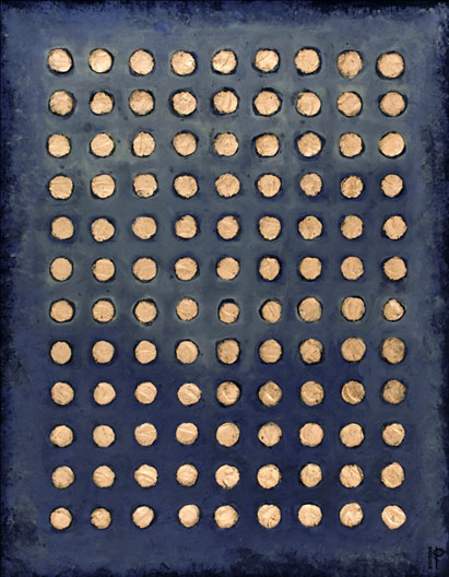 201906 / Ali Baba and the 40 Thieves / Gold Coins / mixed media, oil and enamel painting on canvas / 140 x 110 cm / 2019 / Private Collection