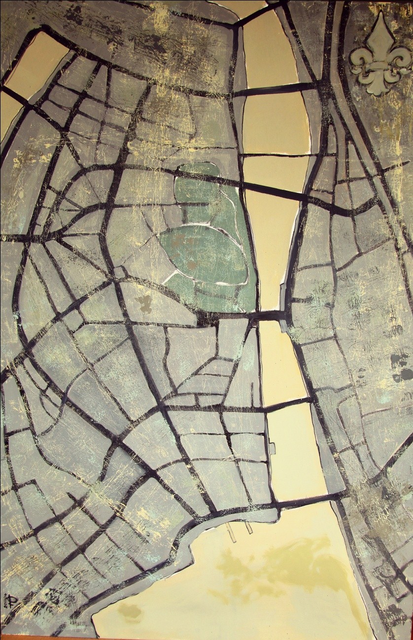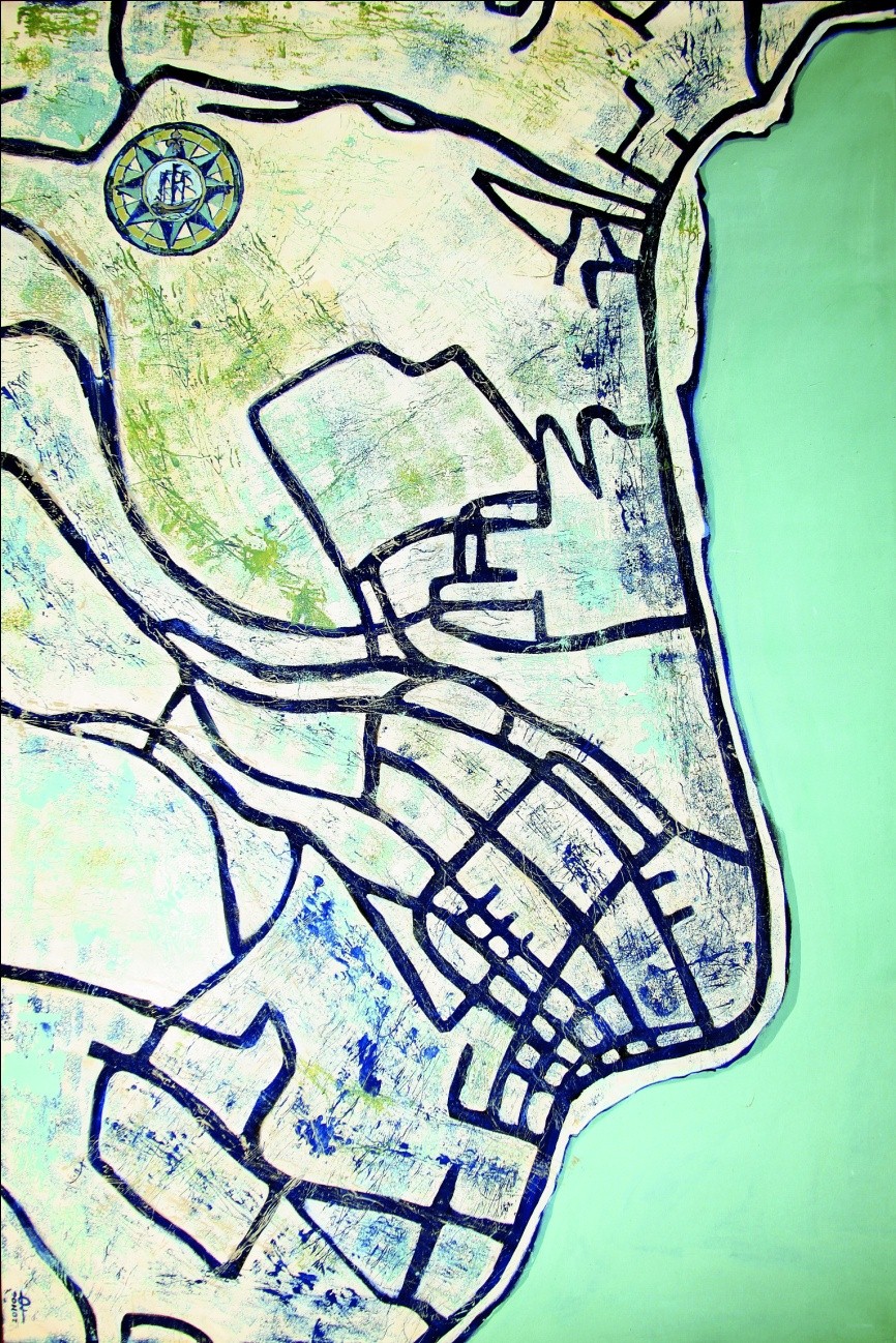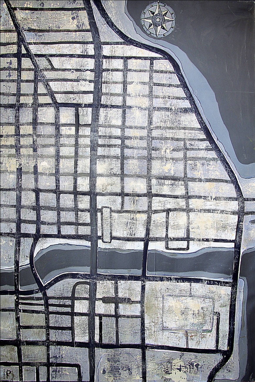 In this series, Rengin Saltik takes on cartography to document her personal impressions of certain cities that she once lived, loved or wandered within and paints them in the colors they recall. This series is a cartographic account of these places in terms of color combinations.
