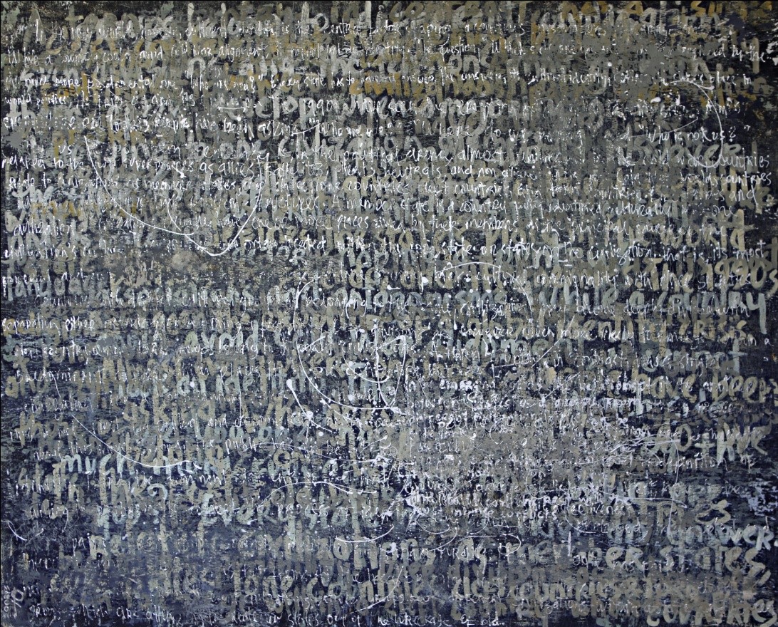 200813 / “The Clash of Civilizations and the Remaking of World Order “ / Quotations from Chapters 6, 8 and 9 / Samuel P. Huntington, 1997 / Oil painting on canvas / 120 x150 / 2008 / Private Collection