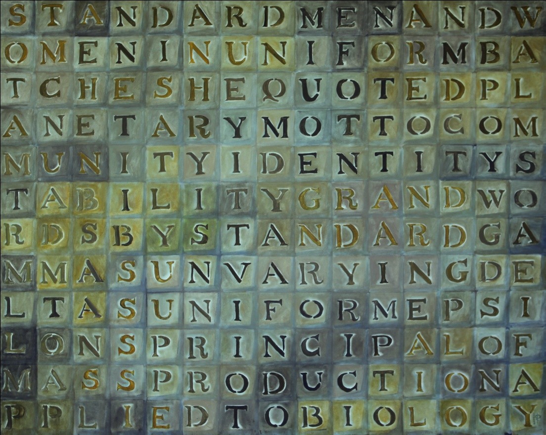 200901 / “Brave New World” / Quotation from Section 1, “ Brave New World” / Aldous Huxley, 1932 / oil painting on canvas / 120 x 150 cm / 2009