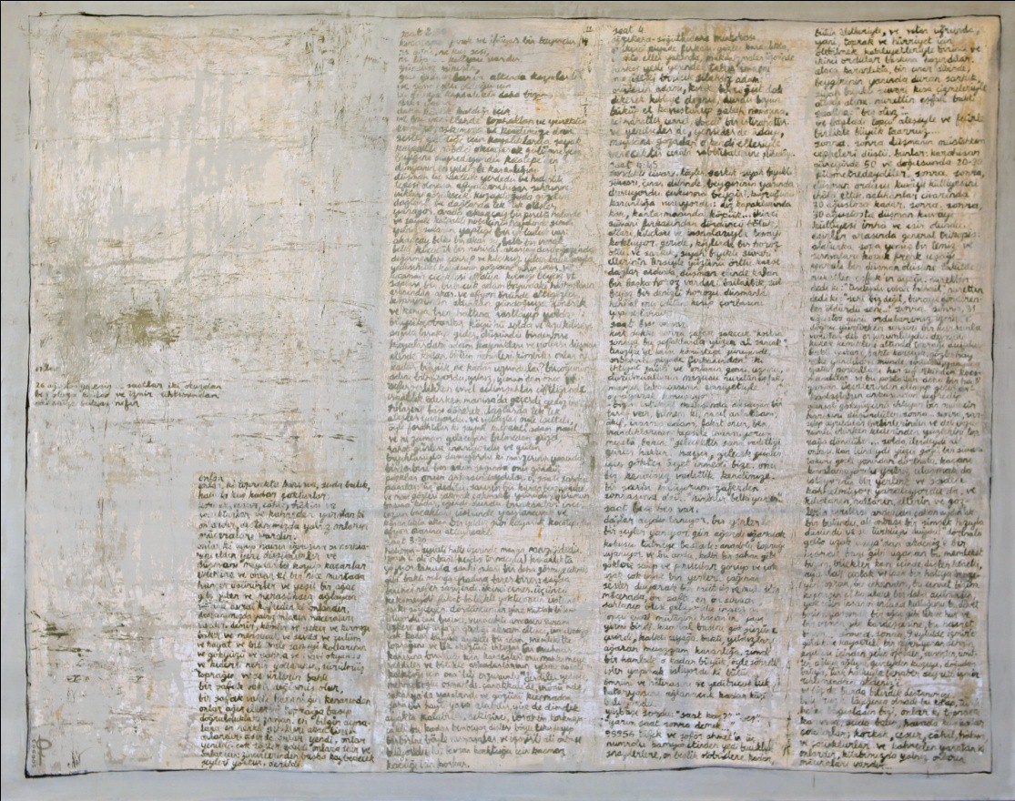 200903 / “Epic Poem of National Forces“ / Quotations from ‘The Opening’ and Section 8 / Nazım Hikmet, 1941 / Oil painting on canvas / 120 x150 cm / 2009 / Private Collection