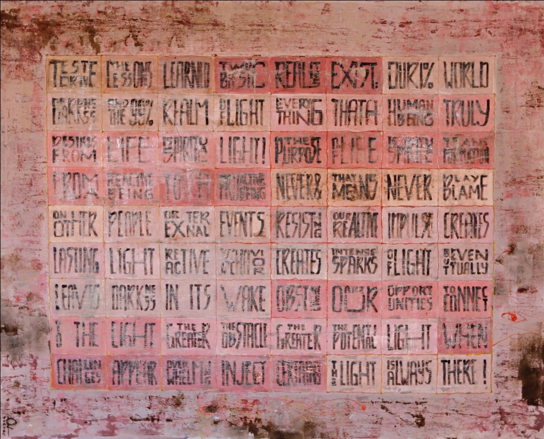 201010 / “The Alchemist“ / Quotations from the Introduction / Paulo Coelho, 1988 / Oil painting on canvas / 150 x120 cm / 2010