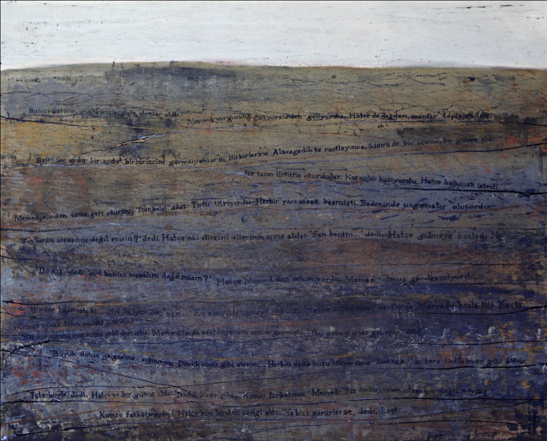 200907 / “Memed, My Hawk“ / Quotation from Volume I, Chapter 7 / Yaşar Kemal, 1955 / Oil painting on canvas / 120 x150 cm / 2009