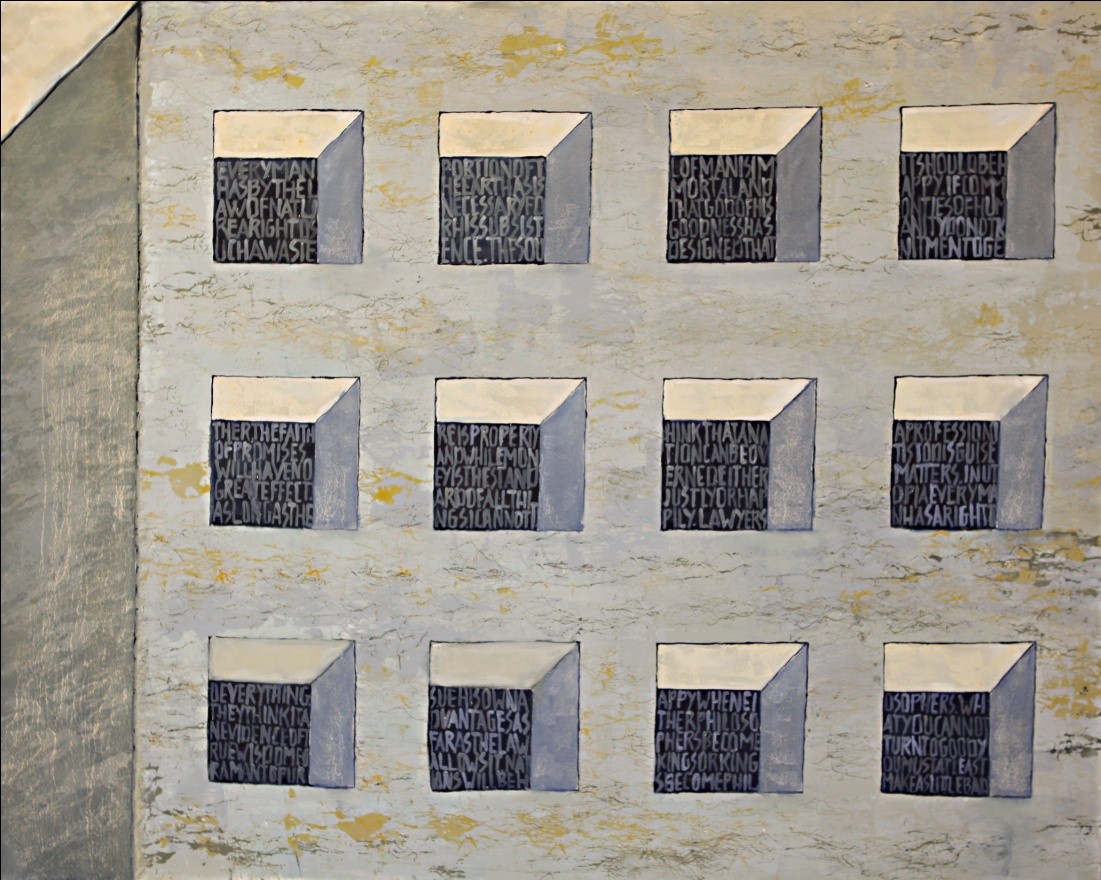 201003 / “Utopia” / Quotations from Book I, Chapter 1,4 and Book II, Chapters 1,2,3,5,6,8 / Thomas More, 1516 / Oil painting on canvas / 120 x150 cm / 2010
