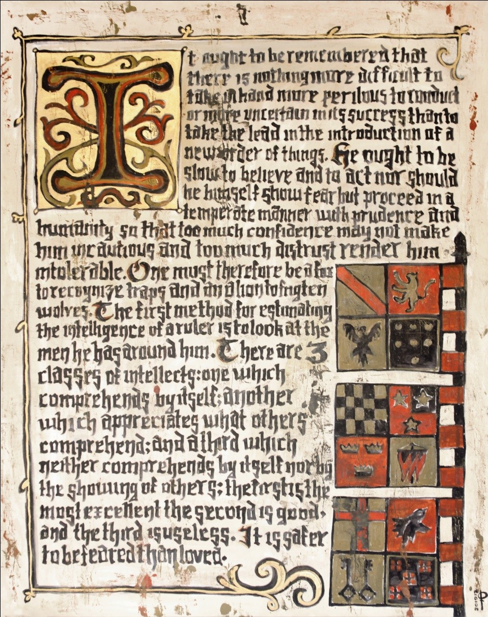 201013 / “The Prince“ / Quotations from Chapters 6, 8, 17 and 22 / Niccolo Machiavelli, 1505 / Oil painting on canvas / 150 x120 cm / 2010